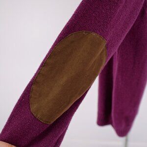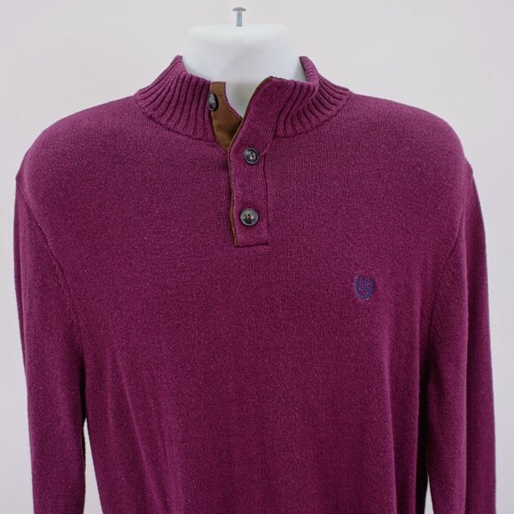 Chaps Purple Ribbed Mock Neck Thick Henley Knit Cotton Sweater Large Elbow Patch