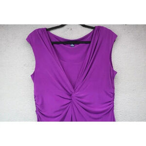 Chaps Purple Ruched in the Center Midi Dress-Size XL