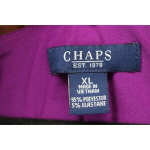 Chaps Purple Ruched in the Center Midi Dress-Size XL. Item is in Great Condition. The material is 95% Polyester and 5% Elastane. Laying flat measuring armpit to armpit it is 21'' and 43.5'' in length.