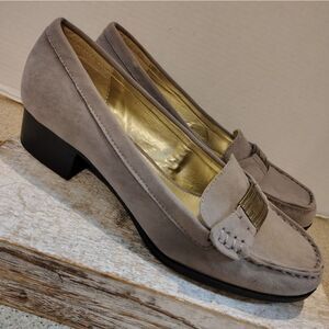👍 Chaps RL Grey Suede Loafers Size 9. A11