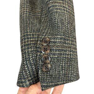 Chaps Ralph Lauren pure new wool blazer in a gorgeous black, brown, cream tweed combo color perfect for autumn and winter season. The jacket is fully lined all buttons are intact two front faux outer pockets and inside pockets.