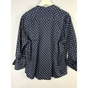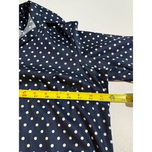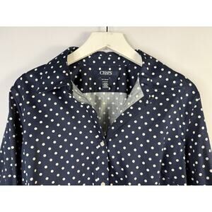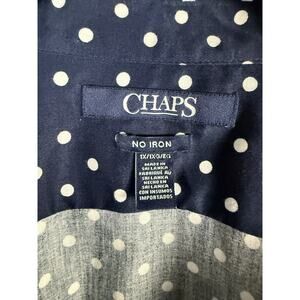 Chaps Ralph Lauren 1X Button Up Top Polka Dots No-Iron Blue 3/4 Flip Cuff