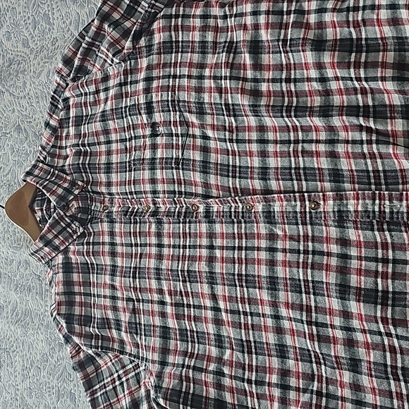 Long sleeve Chaps flannel shirt. Worn gently, zero imperfections, excellent condition. Black/grey and red plaid pattern.