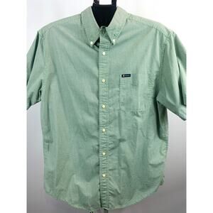 Chaps Ralph Lauren Button Down Men's Gren Plaid, Short Sleeve Shirt Large