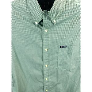 Pre-owned in excellent condition. Chaps Ralph Lauren Button Down Men's Gren Plaid, Short Sleeve Shirt Large.