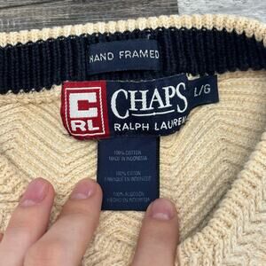 Chaps Ralph Lauren Cream Mens L Hand Framed Herringbone Knit Pullover Sweater