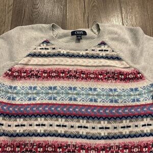 Chaps Ralph Lauren Crew Neck Women's Sweater XL Fair Isle Nordic Cotton Classic