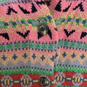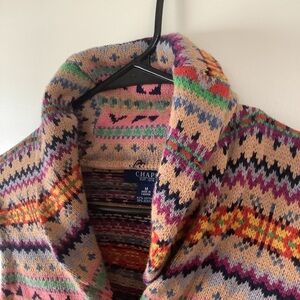 Tribal design shawl collar button up sweater vest in a women’s medium