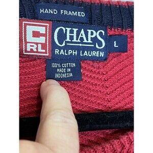 Chaps Ralph Lauren Hand Framed Men’s Red Knit Embroidered Crest Logo Sweater L