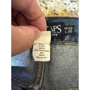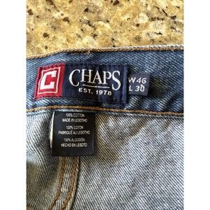 The Chaps Ralph Lauren Men's Jeans in size 46x30 are classic blue denim with a relaxed fit, making them comfortable and stylish for any season. These straight-leg jeans feature a mid-rise with a 5-pocket design and easy-care fabric. The vintage look with the iconic logo accents adds a touch of nostalgia to this timeless wardrobe staple from the Chaps Ralph Lauren collection. Made from cotton denim, these jeans are machine washable and perfect for everyday wear. 29 inseam