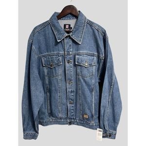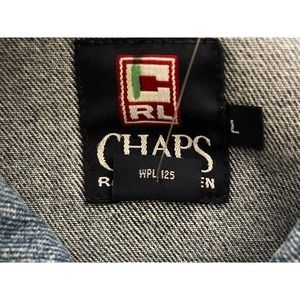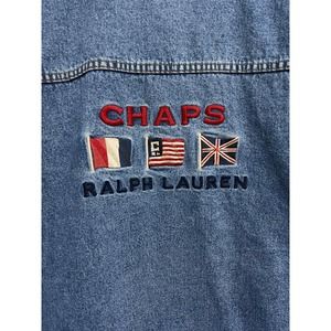 Chaps Ralph Lauren Large Flag Spell Out Logo USA Denim Jean Jacket L Vintage