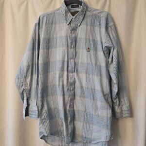 Classic Chaps by Ralph Lauren button-down shirt featuring a timeless plaid pattern in shades of blue, green, and white.