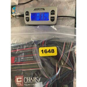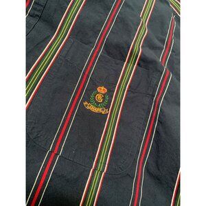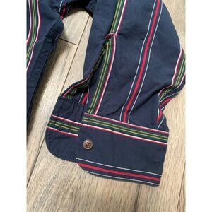 • Blue, striped Ralph Lauren shirt ** Missing Button but replacement is inside shirt