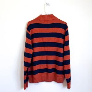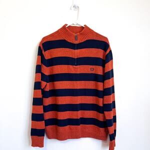 Chaps Ralph Lauren Mens Sweater Size L Orange Navy Striped Preppy Nautical Crest