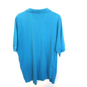 Chaps Ralph Lauren men’s polo shirt in turquoise blue, size XL. Features embroidered crest logo on chest, short sleeves, and classic polo collar. Made of 100% cotton for breathable comfort.