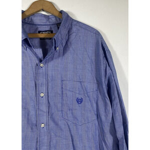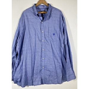 Chaps Ralph Lauren Shirt 2XLT Easy Cary Twill Blue Houndstooth Check Mens Preppy