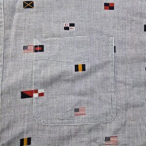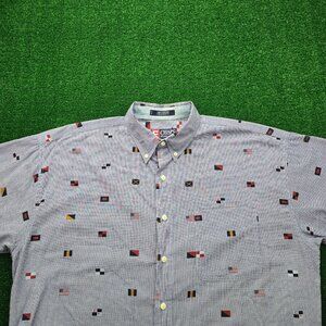 Chaps Ralph Lauren Shirt Men Large/XL Blue Button Down Vintage AOP Flags Summer