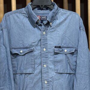 Chaps Ralph Lauren Shirt Mens Large Blue Denim Button Up Western Workwear HOLE