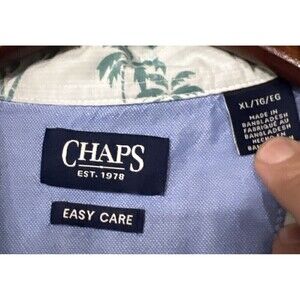 Get ready to embrace the tropical vibes with this Chaps Ralph Lauren shirt in size XL. The button-front shirt features a collared neckline and short sleeves, making it a perfect choice for any occasion, be it a casual outing, a party, or a formal event. The white cotton fabric is adorned with a nature-inspired tropical palm tree print, adding a touch of hipster and designer vibes to your outfit.