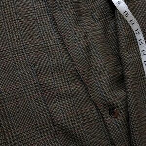 This Chaps Ralph Lauren sports coat blazer is a perfect addition to your wardrobe. It features a greenish glen plaid pattern and is made of high-quality wool fabric. The jacket has a single-breasted cut with two-button front style and a four-button sleeve style. The jacket lapel style is notch, and the jacket/ coat length is long, making it ideal for casual and travel occasions in fall, winter, and spring seasons.