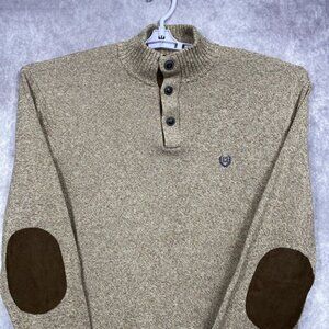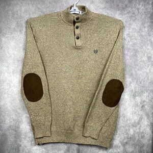 Chaps Ralph Lauren Sweater Men XLT Henley Elbow Pads Vintage Hunting Camp Tan