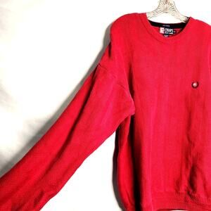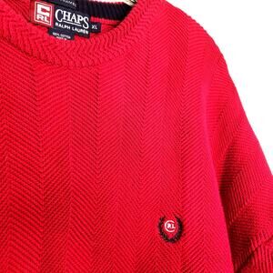 Chaps Ralph Lauren Sweater Size XL Red Herringbone 100% Cotton Warm Heavy Knit