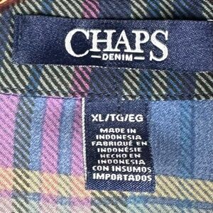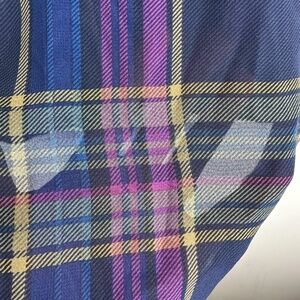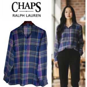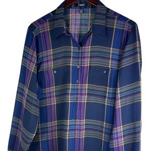 Chaps Ralph Lauren Top Tunic Shirt Button Down XL 14 16 Tartan Plaid Sheer Blue