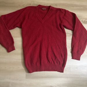 Chaps Ralph Lauren Vintage Red Long Sleeve Mini Waffle Knit Sweater LARGE