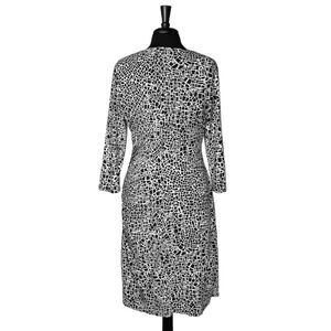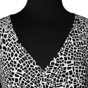 Chaps Ralph Lauren Women's Dress Black White Abstract Stretch Faux Wrap Sheath L