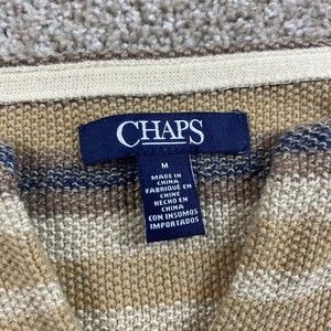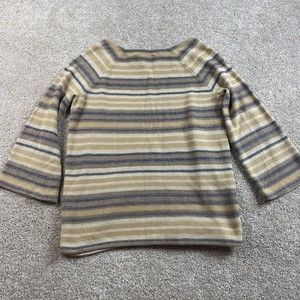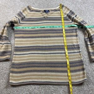 Item: Chaps Ralph Lauren Womens Striped Sweater M Bell Sleeve Tan Beige Blue Southwest