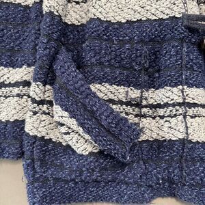 Chaps Ralph Lauren Women’s Navy Blue Striped Open Front Hooded Sweater Size S