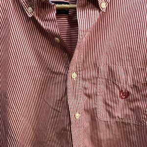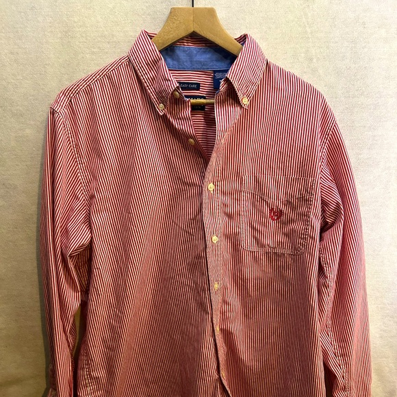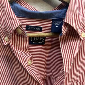 Chaps Ralph Lauren button down dress shirt. Like new condition men’s size medium. Beautiful classic button down dress shirt. Would make a great, fun summer cover up for women.
