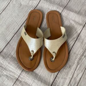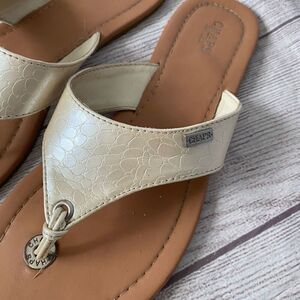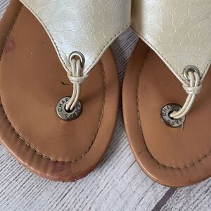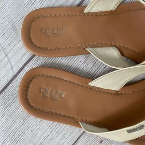 Chaps Ralph Lauren women 8 slip on flip flops white with tan soles