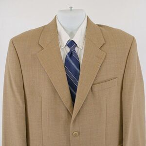 Excellent Pre-Owned Condition meticulously looked over no visible tears, stains, or smells. Measurements are taken with garment laid flat. All of our menswear have a universal Classic Measurement, that is why there can be a difference between tagged and titled measurement. Regardless of what the tag might say to get the sizing of the jacket I doubled the measured pit to pit portion and subtracted 4 inches (traditional measurement)and rounded up to the nearest even number. For length I measured the back of the jacket short is under 30 inches regular is 30 - 32 inches and long is anything over 32 inches. Please see measurements in description and compare to your size.