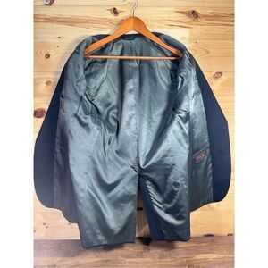 Crafted from a luxurious wool blend, this distinguished gray blazer is a sartorial staple for the modern man. Its pinstripe pattern exudes a subtle sophistication, making it an impeccable choice for both office wear and evening events. The two-piece set is designed with a two-button front closure and a quartet of sleeve buttons, adding a touch of classic refinement. The single-vented back ensures a tailored fit that moves with you. Ideal for those who appreciate vintage style with contemporary flair, this blazer promises to elevate your wardrobe. Gently pre-owned, it awaits its next chapter in your fashion narrative.