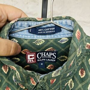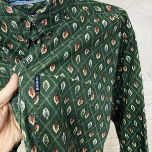 Chaps Ralph Lauren Button Down Shirt All Over Print Leaves 100% Cotton Vintage