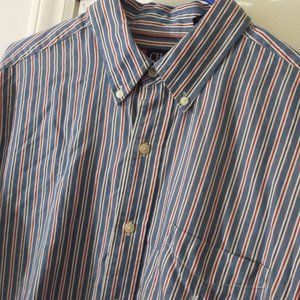 Chaps Red Blue Stripe Button Down Shirt L Cotton