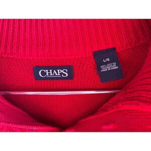 Chaps Red Cable Knit Button Up Sweater L/G 100% Cotton 32k