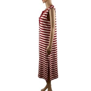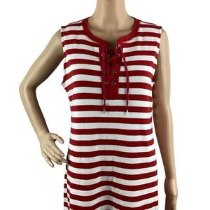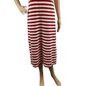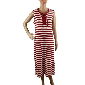 Chaps Red Stripe Sleeveless Cotton Midi Dress Size L