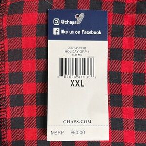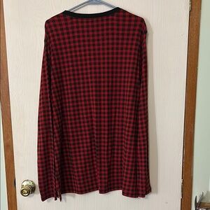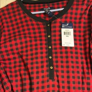 Chaps Women’s NWT Henley long sleeve shirt with 5 button front and side slit hem. Red and black with black trim. Could also be used as an oversized sleep shirt.