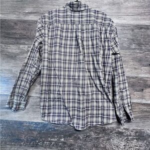 This Chaps shirt showcases a vibrant red and tan color palette, perfect for a laid-back yet stylish appearance. Crafted for comfort, it features a classic button-down design ideal for casual outings. The long sleeves and relaxed fit make it a versatile wardrobe staple.