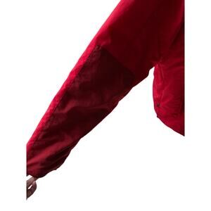 This Chaps (unisex) red light quilted/puffer zip up windbreaker jacket is perfect for staying warm on chilly/wet days. It's a unisex style and its main color is red with a burgundy accent patch piece on each sleeve. Adjustable bottom (hem) and zipper/button combination closure. In excellent used condition. EUC