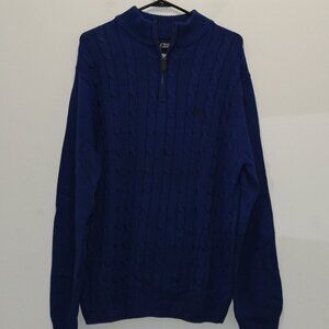 Chaps Royal Blue Cable Knit Quarter Zip Sweater Size Large