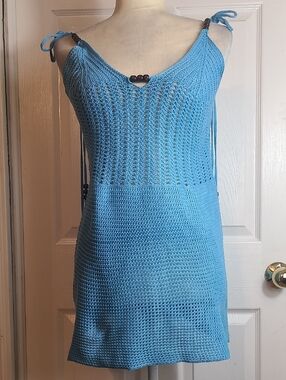 Long Bell Sleeves, That Button at Wrist, Scoop Neck, Button Down Blouse, Ruffled Neckline and Ruffled Front, Navy Blue With White Polka Dots, Size Large.