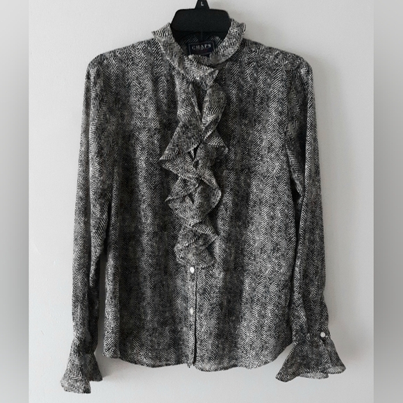Sophisticated Chaps blouse with a black and gray pattern.