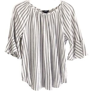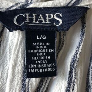 Chaps Ruffled Short Sleeve Peasant Blouse Blue White Striped Large