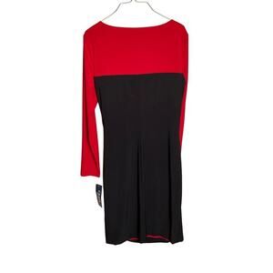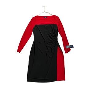 Chaps Sheath Dress Ruched Draped Long Sleeve Colorblock Black Red Womens Large