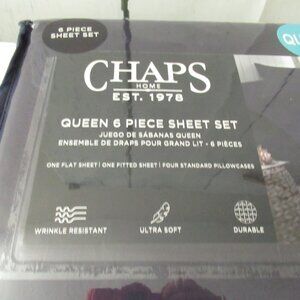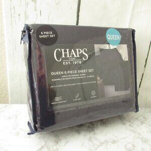 Chaps Sheets Queen Size Navy Blue Wrinkle Resistant Ultra Soft 6 Piece Set