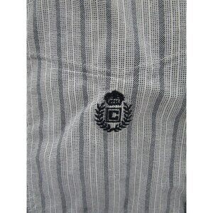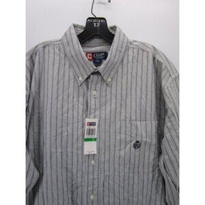 Chaps Shirt Large Button Down Striped Logo Embroidered Knit Preppy NEW