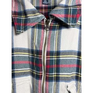 Chaps Shirt Men 1X Plaid Long Sleeve Full Zip Chest Pockets Casual Red White